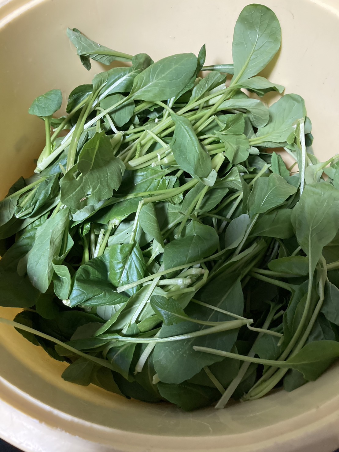 ある日、小柄な小松菜が、たくさんシェアハウスに届きました。売り物にならない物のようですが、味と栄養は変わりません!