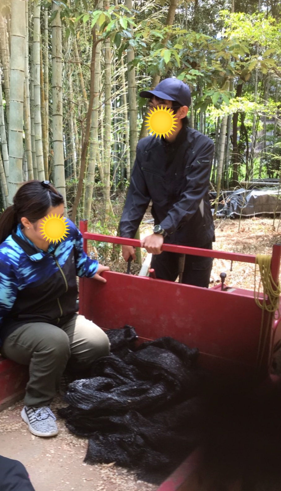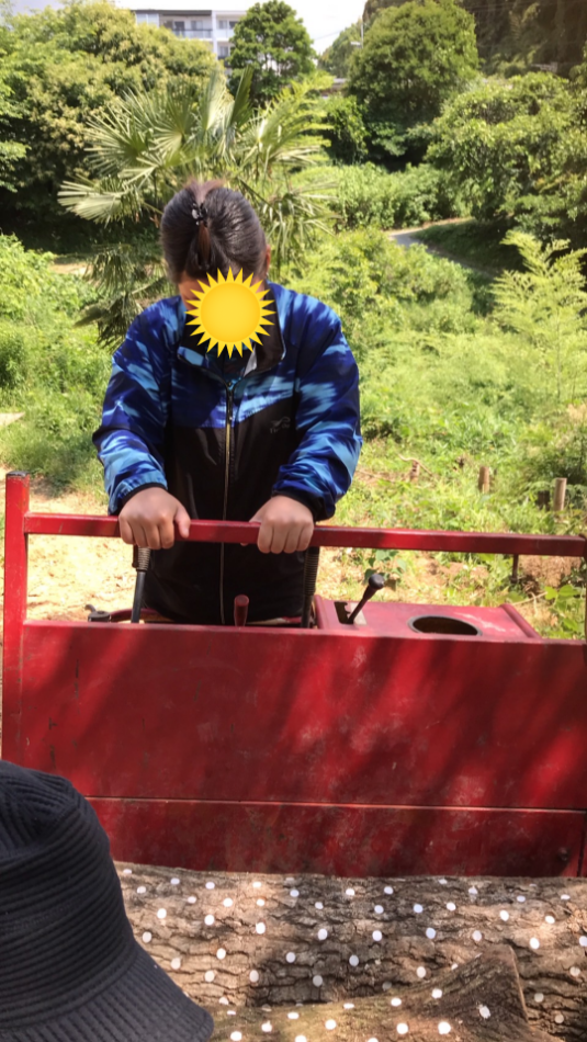 重い原木を運ぶのは大変だったそうですが、空になった荷車に、乗っている顔は笑顔になっていました(*´▽`*)