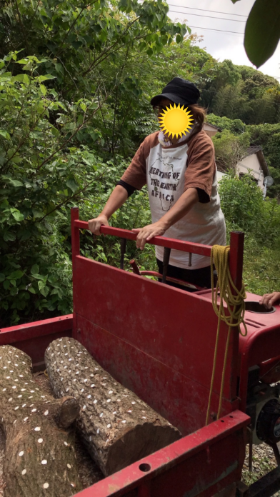 椎茸の原木運びです。菌の打ち込みは、すでに終わっていて、椎茸が育つのに良い環境へと運ぶ作業をしました。