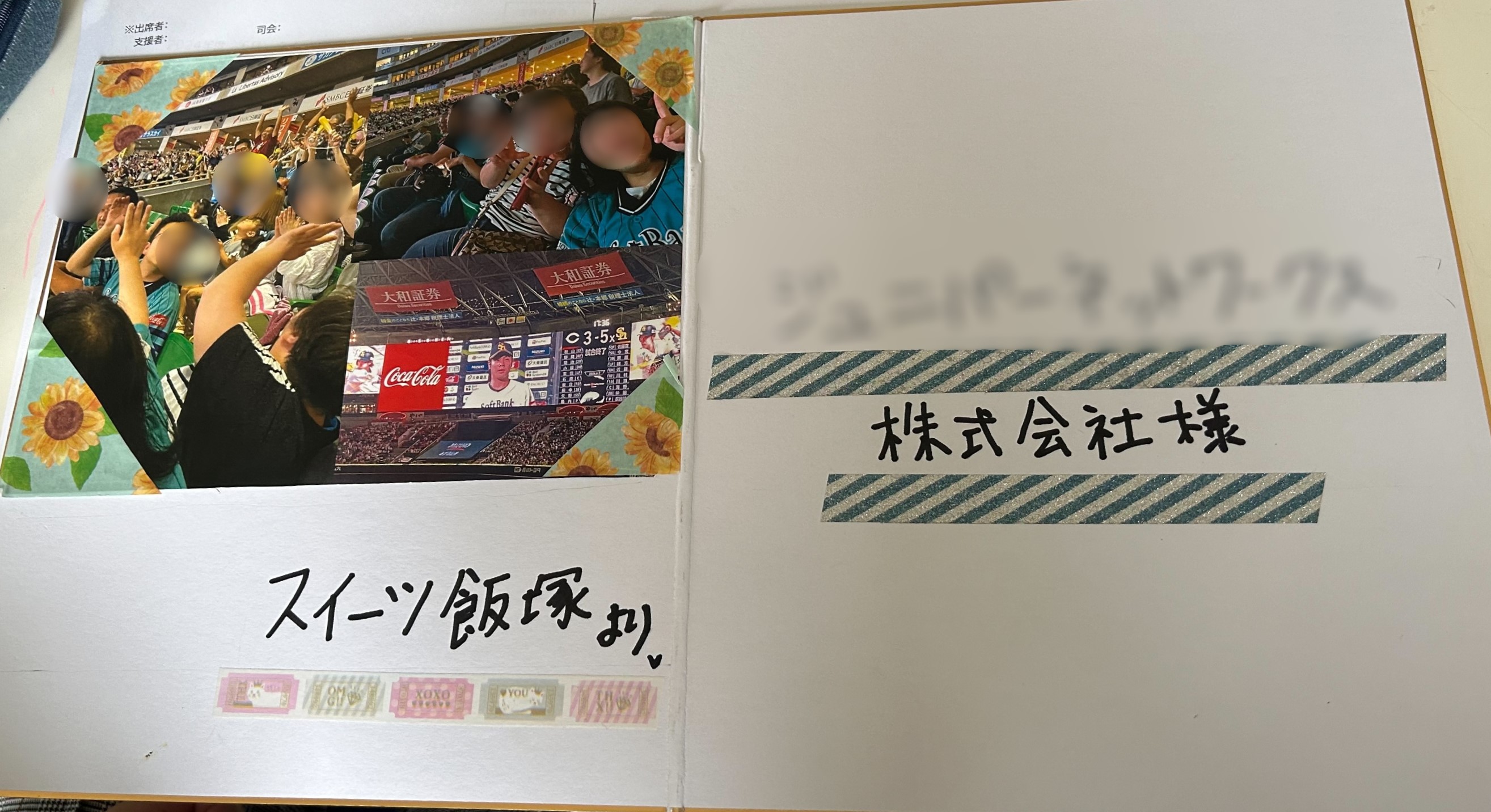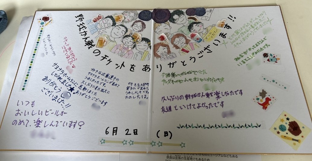 6月5日のブログにあげていました、「スイーツ飯塚で招待された野球観戦」のお礼として、寄せ書きを作りました。