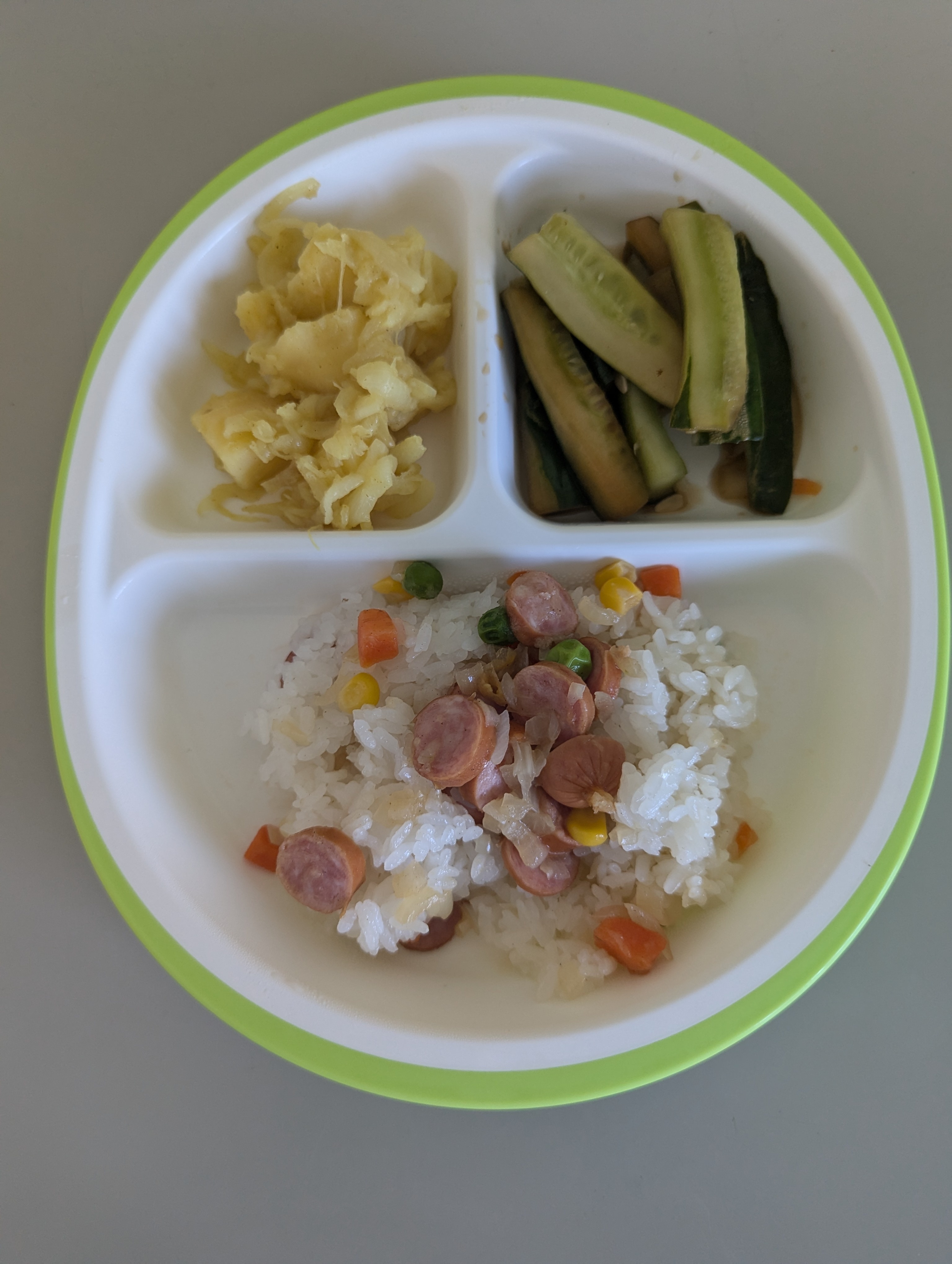 この日は、いつもより、少し豪華に、ピラフ風ご飯が出ました。