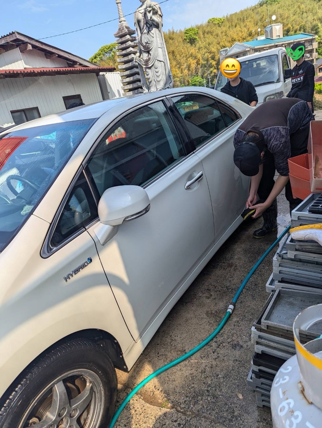 車内掃除、外回りの低い所、高い所、マット掃除など、それぞれに仕事を任せて綺麗にしてもらいました。