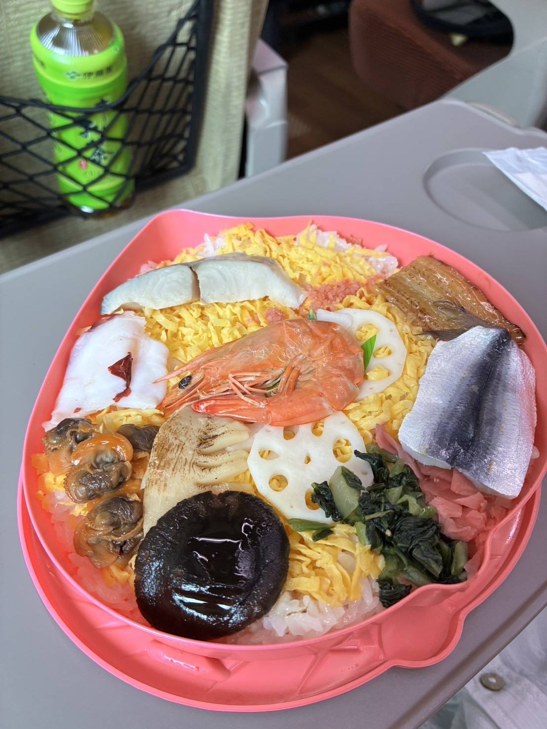 在来線に乗り換えた車内で、昼食の時間。