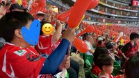 この日は、ちょうど鷹祭の日で、来場者に、赤いユニフォームが配られました。