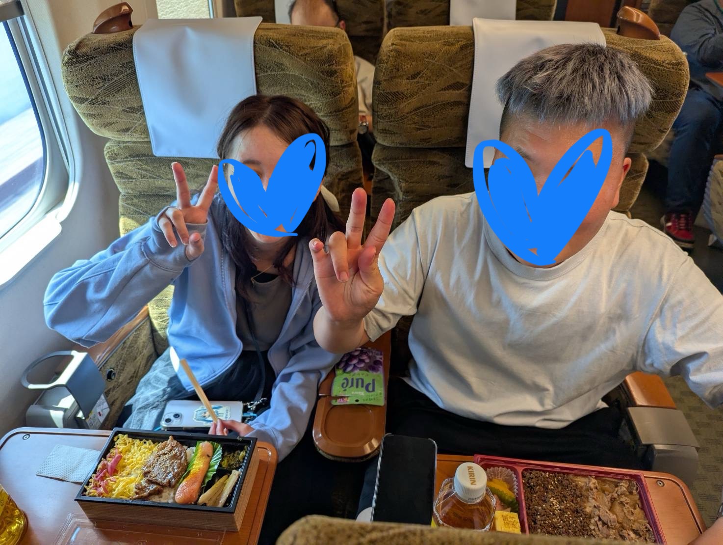 ちょうど、お昼時の移動だったため、博多駅で、駅弁やおやつを買って、新幹線に乗りこみました。