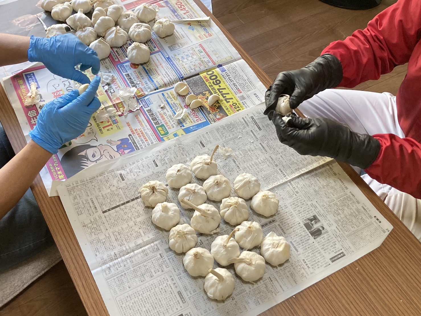まずは、にんにくの皮を、せっせと剥くことから始まります。