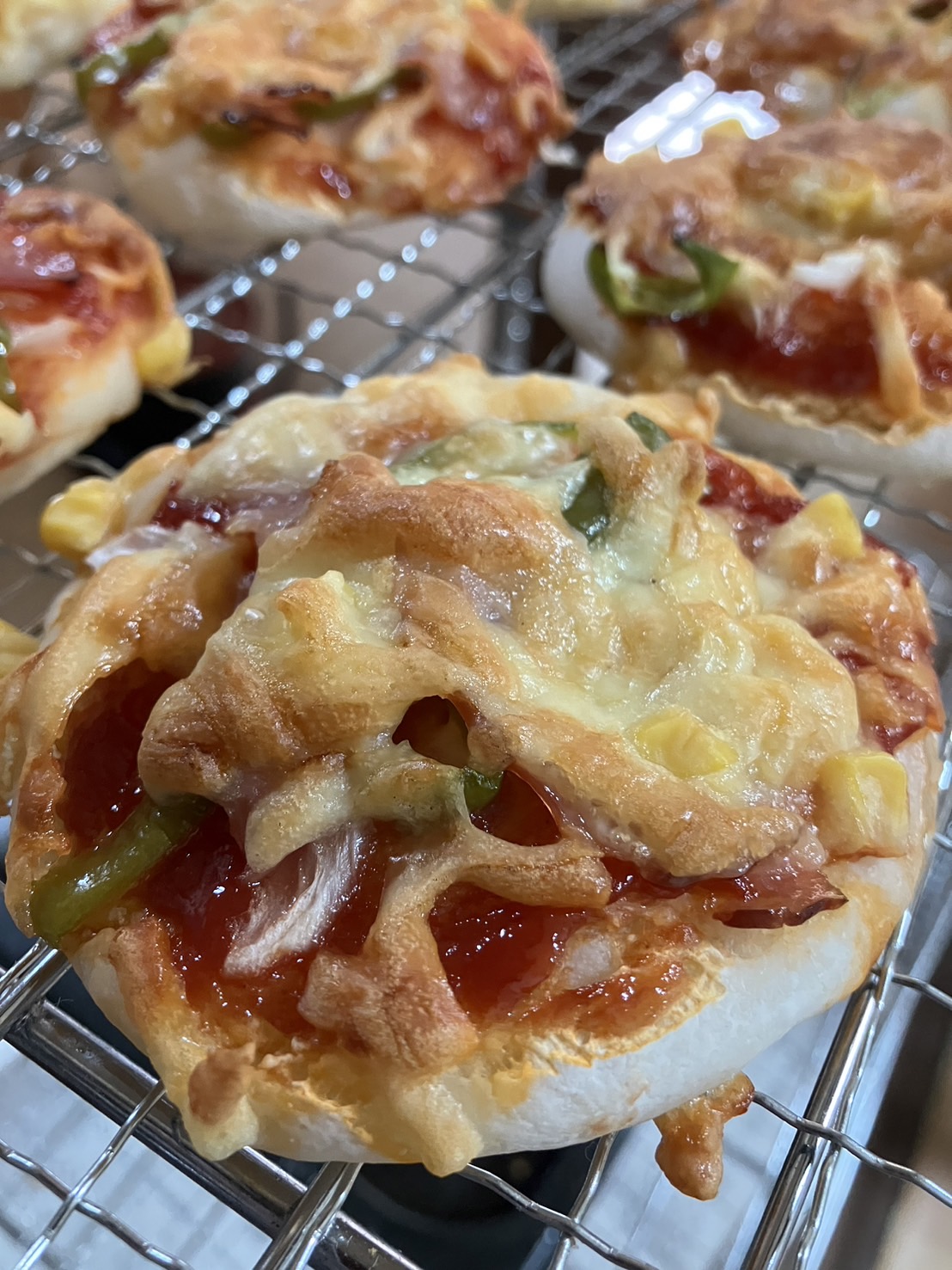 生米パンは、焼きたては特に美味しいのですが、次の日は、少々硬くなってしまうのですが、ピザなら、トースターで軽く温めたら、美味しさ復活!